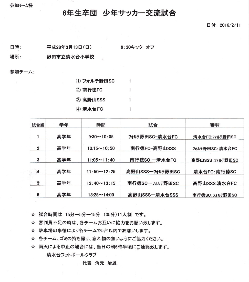 1日目試合結果はこちら ⇒ 1日目結果⑥友好杯2015